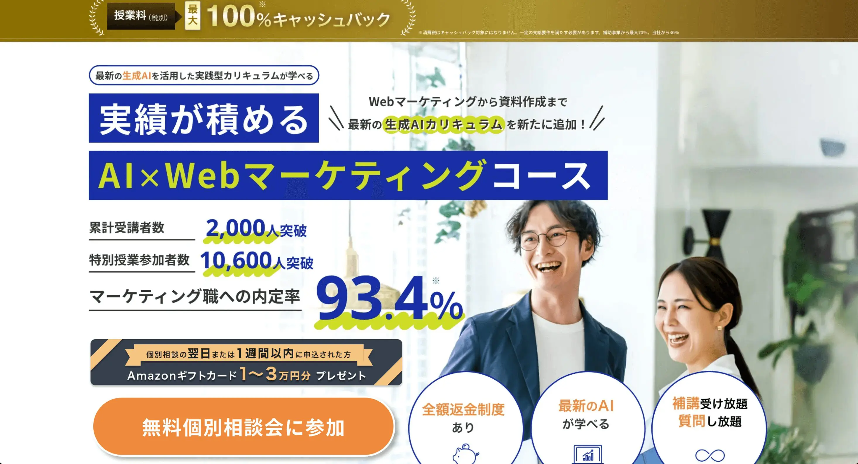また、「転職保証オプション」まで携えています。要は、転職できなければ受講料の半額返金を行うというオプションです。